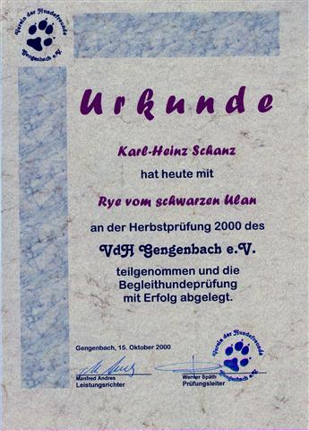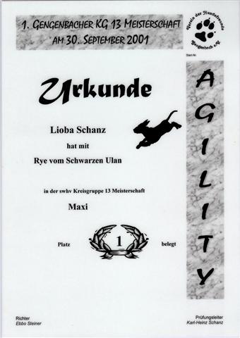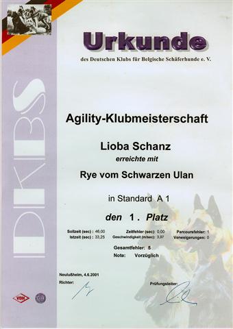 Trotzdem hat sie im Laufe der Zeit einige beachtliche Titel errungen. Sie wurde DKBS-Pokalsiegerin, in ihrer Kreisgruppe Kreismeisterin und ein Jahr später Vize-Kreismeisterin. Für die wenigen Starts die sie pro Jahr hatte eine sehr gute Ausbeute. Sie lief unheimlich sicher und zuverlässig und war auch bei hohen Starterzahlen immer eine ernst zu nehmende Konkurrenz.